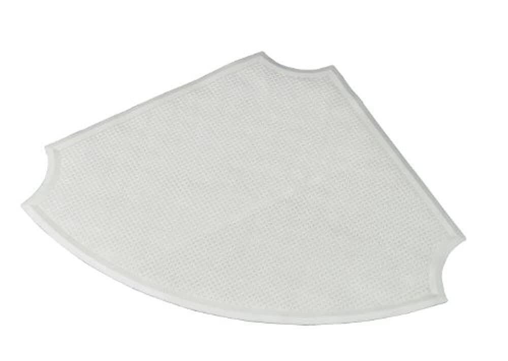 A unique design that fits corner showers to reduce the risk of slipping. The basket-weave pattern is and effective non-slip surface and the mat is held in place with numerous, large suckers.
