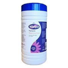 renewable energy. This gentle formula is paraben free and pH balanced, designed to clean all over the body, to prevent cross contamination, we recommend using 1 wipe per limb. Nilaqua has a delicate fragrance that leaves you feeling clean and refreshed. Ideal for use in hospitals, nursing and residential homes. Ready to use on all patients young through to elderly. Soft, gentle and moist cleansing patient wipes supporting our healthcare professionals deliver excellent everyday care. Easy to tare perforation with a click seal lid, preventing wipes from drying out between uses.